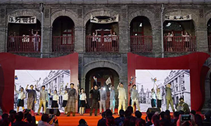 本次主題團日活動注重情景感和儀式感的渲染與營造,活動現(xiàn)場以京師大學堂建筑遺存為整個舞臺背景,通過對現(xiàn)場氛圍布置和舞臺舞美風格的一致設(shè)計,再現(xiàn)了百年前的歷史場景。