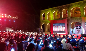 由于本次活動為露天場地,舞臺背景為古建筑遺址,周圍是涉外賓館和居民小區(qū),并且當天有七級大風肆虐,在客觀上給活動帶來了相當?shù)碾y度。