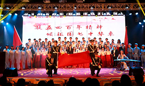 這一次,我沒有坐在觀眾席上,我拿著對講機時刻注意著現(xiàn)場的情況??墒钱斘衣牭礁鲗W(xué)院的同學(xué)們合唱五四愛國歌曲時,我的心情同樣是激動的。