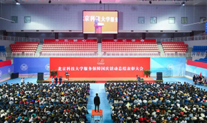 11月4日晚7:00,北京科技大學服務保障國慶70周年活動總結表彰大會在體育館隆重舉行。校領導、職能部門、參加國慶70周年慶?;顒尤罕娪涡小V場合唱、廣場聯歡和志愿服務的全體師生及相關保障服務人員1800余人,本科2019級新生代表1000余人參加大會。
